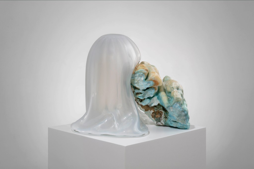 In The Loop (also shown in variations titled Loop (250 million BC)), artist Rachel Rose contrasts raw mineral and blown glass in sculptural forms that evoke deep geological time. These pieces were part of exhibitions at Pilar Corrias galleries in London (Eastcastle Street / Savile Row) where several works in the Loop series were shown.